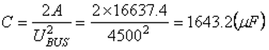 實際客戶選擇為每個電容器的電容量為6000uF。這樣選擇的好處是由于直流母線支撐電容器的電容量增大會使直流母線的交流電壓分量最小。